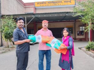 बदायूँ जनमत। आजादी के अमृत महोत्सव के अंतर्गत स्वतंत्रता दिवस के उपलक्ष में हर घर तिरंगा अभियान में योगदान देते हुए सहसवान स्थित डीपी महाविद्यालय ने अभियान के जनपद प्रभारी एवं राष्ट्रीय सेवा योजना के जिला नोडल अधिकारी डॉ राकेश कुमार जायसवाल को एनएसएस स्वयसेविओं के द्वारा निर्मित तिरंगा प्रदान किया।