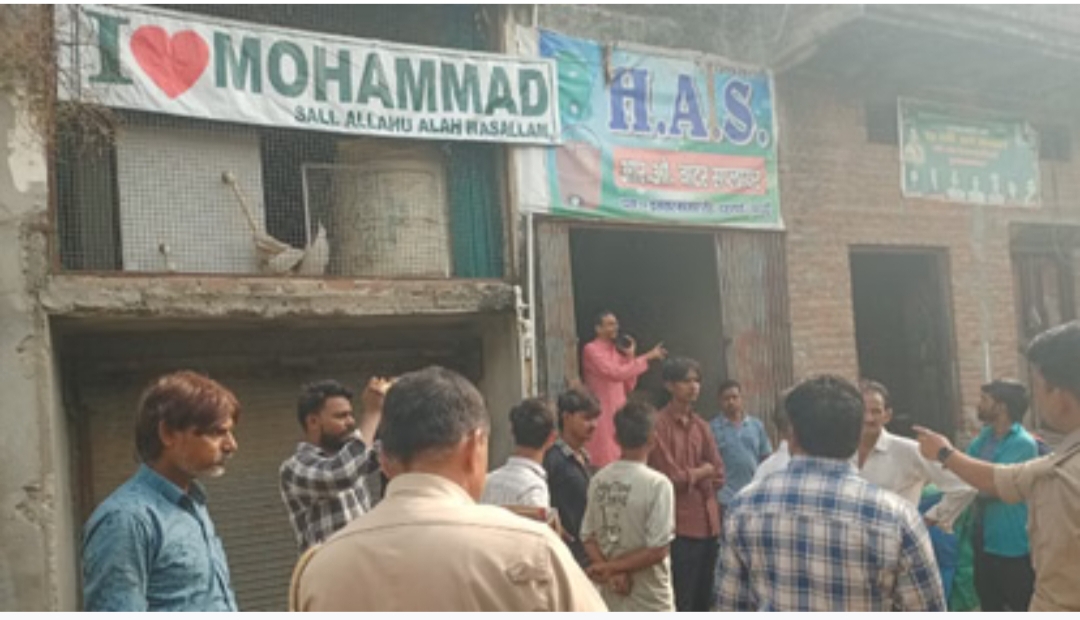 बदायूॅं जनमत। जरीफनगर थाना क्षेत्र के नगर पंचायत दहगवां में शनिवार सुबह अचानक ‘आई लव मोहम्मद’ लिखे बैनर लगाए जाने से माहौल गर्मा गया। पोस्टर लगाए जाने की जानकारी होते ही पुलिस मौके पर पहुंच गई। इस दौरान पुलिस और कुछ युवकों के बीच तनातनी भी हुई। यह बैनर एक मेडिकल स्टोर पर लगाया था। पुलिस ने मौके से चार लोगों को हिरासत में ले लिया।