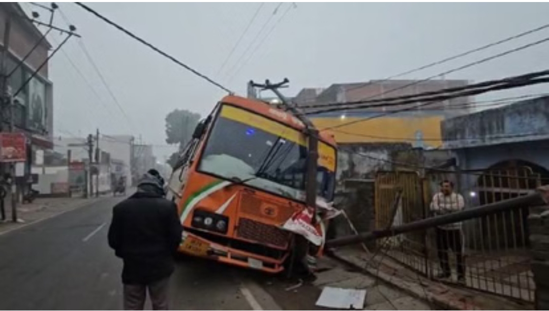 बदायूॅं जनमत। घने कोहरे और कड़ाके की ठंड के बीच मंगलवार देर रात बड़ा हादसा होते-होते टल गया। रोडवेज वर्कशॉप में सफाई के लिए जा रही रोडवेज बस अनियंत्रित होकर सड़क किनारे लगे 11 हजार वोल्टेज के बिजली पोल को तोड़ते हुए नाले में जा घुसी। गनीमत यह रही कि बस में कोई यात्री सवार नहीं था। केवल चालक और परिचालक ही मौजूद थे, जिससे बड़ा जनहानि का खतरा टल गया।